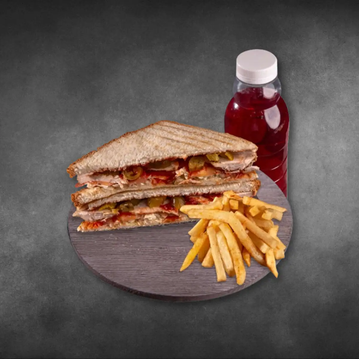Сэндвич на выбор, картофель фри или по-деревенски, напиток на выбор